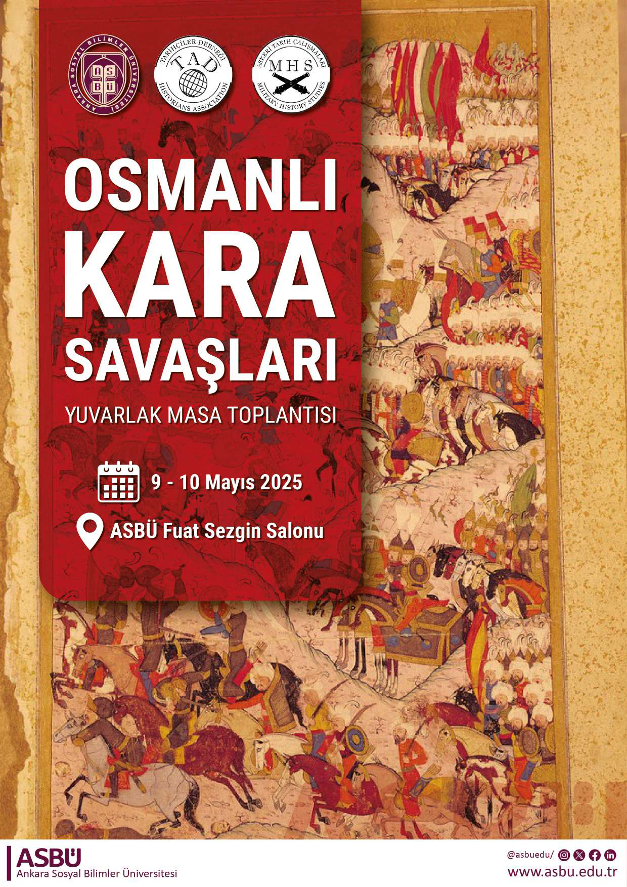 Askerî Tarih Çalışma Grubu olarak ikinci toplantımızı, “Osmanlı Muharebeleri ve Kuşatmaları (15. ve 19. Yüzyıllar)” temasıyla, 9-10 Mayıs 2025’te Ankara Sosyal Bilimler Üniversitesi’nde, Ulus’ta düzenledik. Bu toplantıda, askeri tarih alanında çalışan meslektaşlarımızı bir araya getirerek, Osmanlı savaş stratejileri, kuşatma teknikleri ve muharebe tarihi üzerine yeni tartışmaların ortaya çıkmasına imkân sağlamayı amaçladık. Bu amaçla sınırlı sayıda katılımcı davet edilmiş olup bu sayede sunumlar ile tartışmalar, katılımcılar arasında rahat ortamda icra edilmiştir.